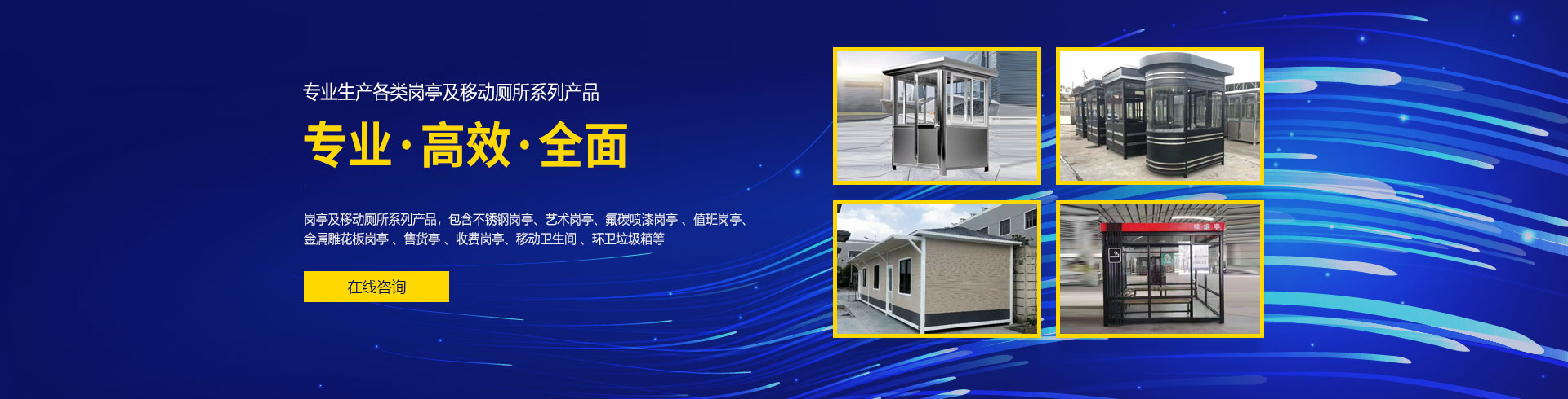 重慶市科路通金屬加工有限公司是一家專業生產各類崗亭及移動廁所系列產品,包含不銹鋼崗亭、藝術崗亭、氟碳噴漆崗亭 、值班崗亭、金屬雕花板崗亭 、售貨亭 、收費崗亭、移動衛生間 、環衛垃圾箱等不銹鋼金屬制品的設計、生產、銷售、服務為一體的專業化公司...